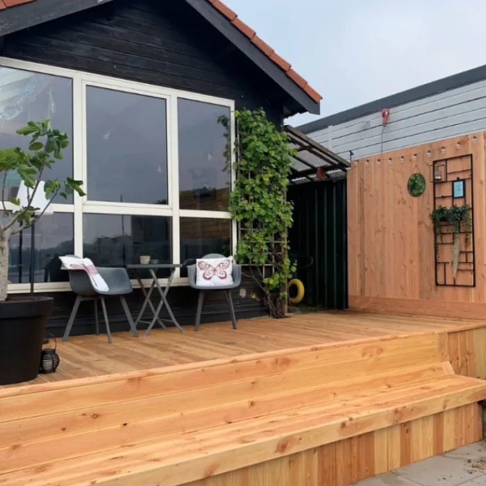 Twijfel je over de kleur van de vlonderplank, vraag dan een kleurstaal aan via de knop hierboven.
