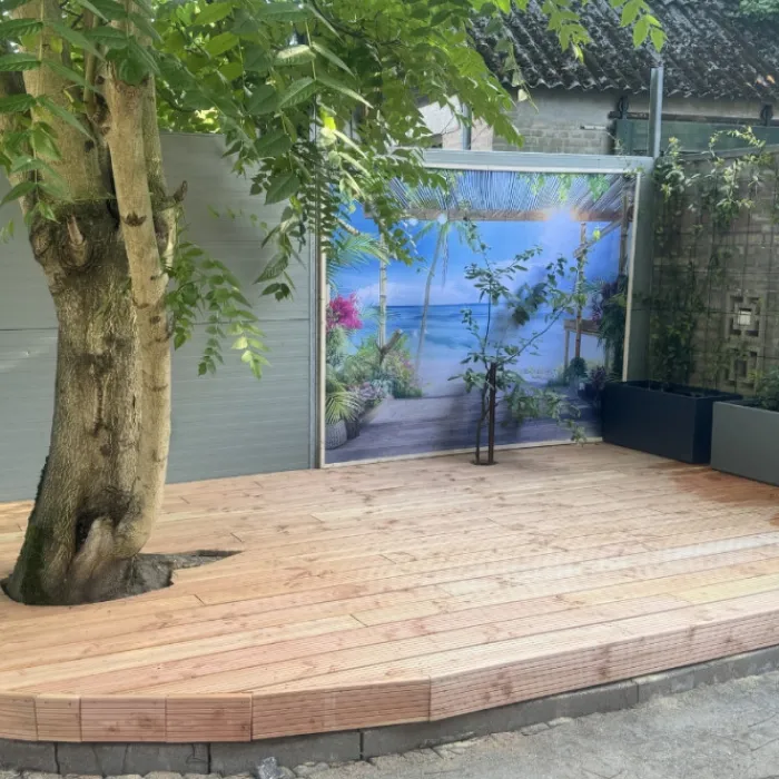 Vlonder totaalpakket voor 1 m2 gelegd met Douglas vlonderplanken van 300 cm lang, 2,5 cm dik en 14 cm breed. Dit pakket bestaat uit vlonderplanken, onderbalken en schroeven om een vlonderterras te maken. Vul de benodigd aantal vierkante meter terras in en er wordt automatisch uitgerekend hoeveel vlonderplanken, onderbalken en schroeven je nodig hebt. Bij dit pakket wordt geen rekening gehouden met snijverlies. Tevens is de vlonderplank tweezijdig te gebruiken.