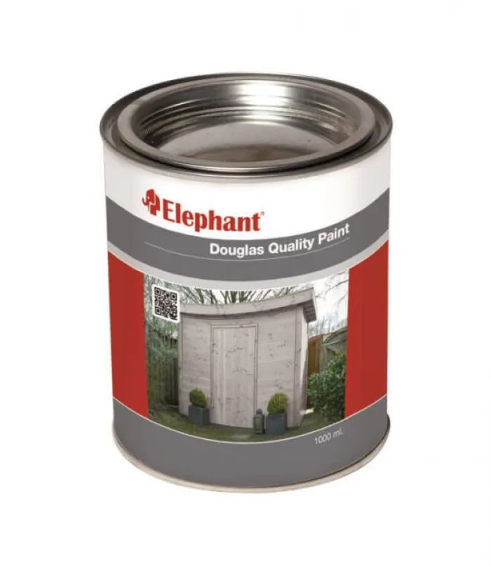Elephant Douglasverf wit is sneldrogend, vochtregulerend en heeft een lange levensduur. Douglas verf is bij ons verkrijgbaar in de kleuren wit, zwart, grijs en naturel. Uitstekende bescherming voor tuinveranda’s, schuren, schuttingen, steigers, vlonderplanken, tuinschermen, dierenverblijven, speeltoestellen, buitenkeukens, terrasplanken, moestuinen etc.
