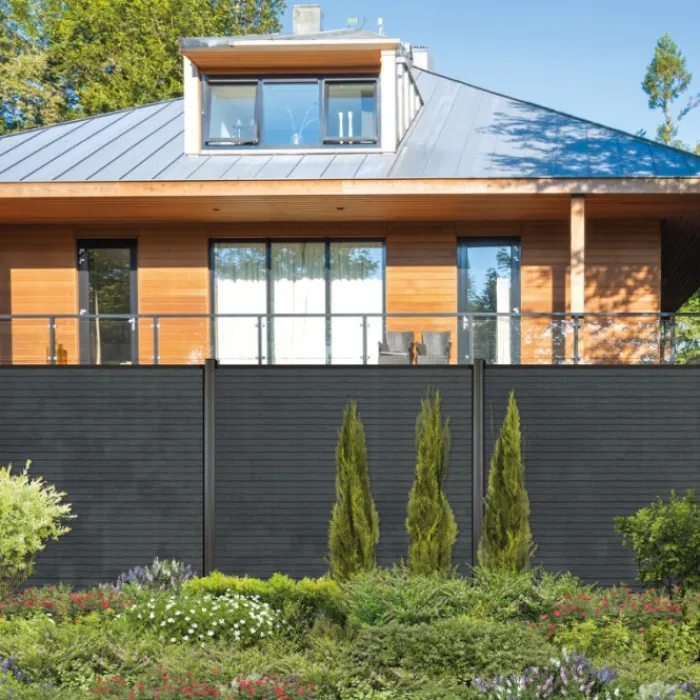 Hot Elephant Schutting composiet Design donkerbruin met blank aluminium frame (180 x 180 cm)
