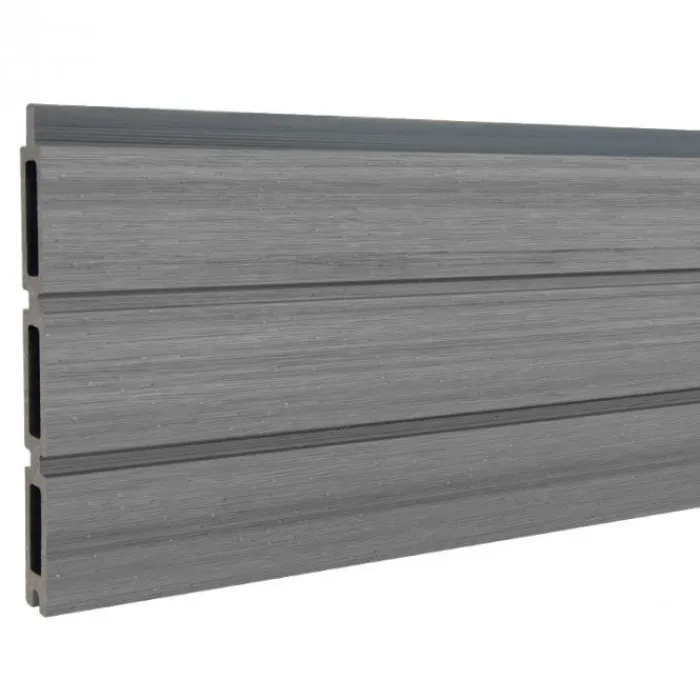 Zelfbouw schutting composiet co-ex Rhombus Triple Naturel Grey – zwart alu accessoires (180 x 180 cm). Geschikt om een scherm te maken van 180 cm hoog en maximaal 180 cm breed. De breedte is eenvoudig in te korten.