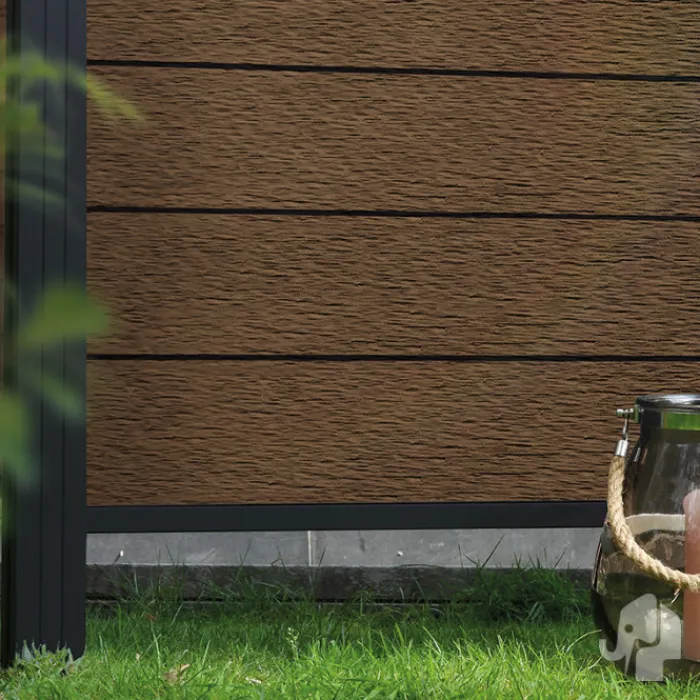 Deze Elephant Modular composiet tuinscherm set bestaat uit 2 afsluitlijsten boven en onder, 1 bevestigingset, 7 veren antraciet aluminium en 8 composiet lamellen. Bestel hierbij de bijbehorende Modular tuinpalen. Je stapelt eenvoudig de schutting tussen de palen in. De netto hoogte van het scherm is enkele centimeters lager dan de opgegeven 180 cm.