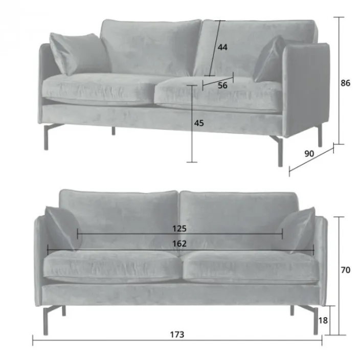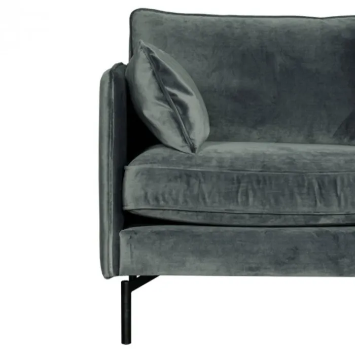 De 2,5 zitsbank Zinnia is een hippe, eigentijdse bank met rechte armleuningen. Door de opvallende velours stof en de unieke metalen pootjes, krijgt deze moderne bank een enigszins retro uitstraling. Het zitcomfort van deze bank is stevig. Uitgevoerd in velours Juke grijs 65.