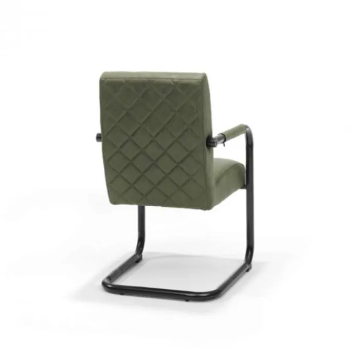 De eetkamerstoel Monaco is een stoere, industriële eetkamerstoel bekleedt met een lederlook stof Maya in de kleur groen. Het ‘zwevende’ model geeft de stoel niet alleen een mooie look, maar zorgt er ook nog eens voor dat de stoel heerlijk comfortabel zit! Zo kun je urenlang heerlijk tafelen…! De Monaco stoel is uitgevoerd met zwart gepoedercoat metalen poten. De rugleuning is voorzien van decoratieve stiksel.
