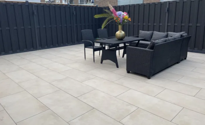 Lage composiet schutting passend bij Stijl tuinschermen. Bestaat uit aluminium liggers en composiet planken.