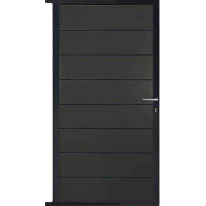 C-Wood zelfbouw tuindeur aluminium antraciet frame Modular – composiet antraciet. Afmeting 90 x 180 cm. De hoogte van de tuindeur is enkele centimeters lager dan de opgegeven 180 cm. De tuindeur wordt geleverd inclusief deurbeslag.