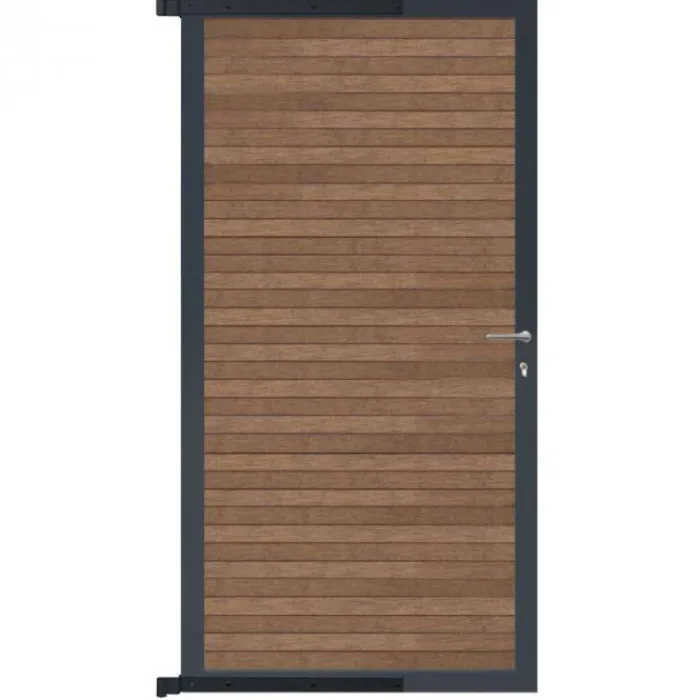 C-Wood zelfbouw tuindeur Rhombus Triple antraciet aluminium frame en composiet bruin gevlamd lamellen. Afmeting 90 x 180 cm. De poort wordt geleverd inclusief deurbeslag.