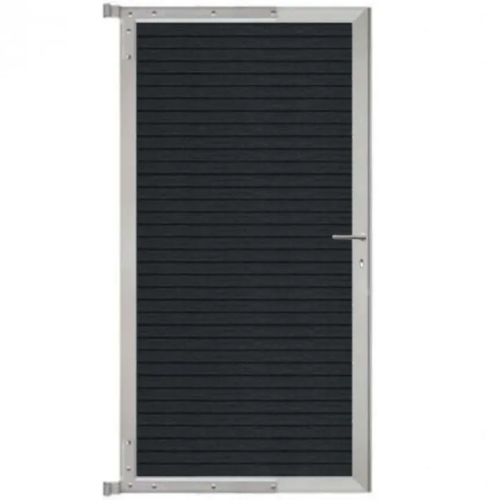 C-Wood zelfbouw tuindeur Rhombus Triple blank aluminium frame en composiet antraciet lamellen. Afmeting 90 x 180 cm. De poort wordt geleverd inclusief deurbeslag.