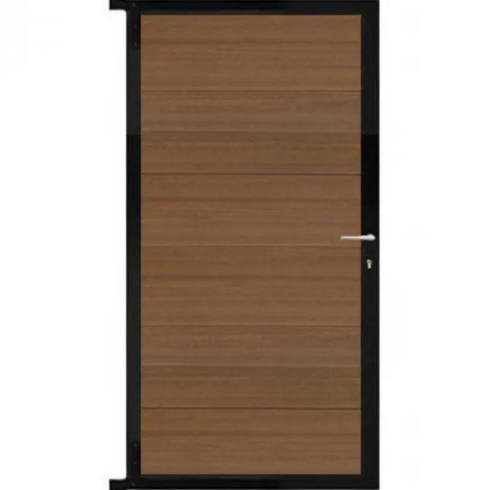 C-Wood tuindeur composiet Mix & Match frame aluminium zwart (90 x 180 cm). De netto hoogte van deze tuindeur is enkele centimeters lager dan de opgegeven 180 cm. Deze komt uit op 175 cm hoog. De deur wordt geleverd inclusief deurbeslag.