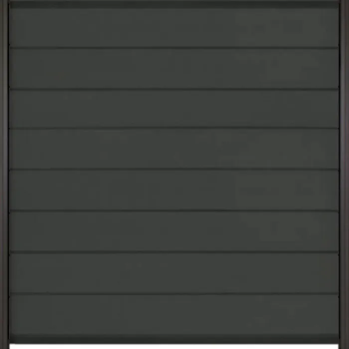 C-Wood zelfbouw schutting composiet Modular antraciet met antraciet aluminium accessoires. Geschikt om een scherm te maken van 200 cm hoog en maximaal 180 cm breed. De breedte is eenvoudig in te korten. De netto hoogte van het scherm is enkele centimeters lager dan de opgegeven 200 cm.