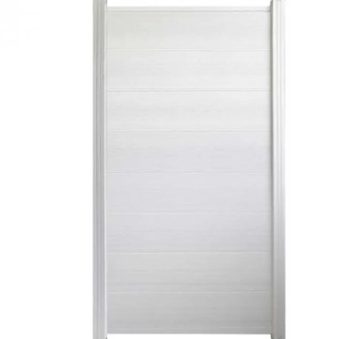 C-Wood zelfbouw schutting composiet Modular wit met wit aluminium accessoires. Geschikt om een scherm te maken van 180 cm hoog en maximaal 90 cm breed. De onderdelen dien je in de breedte in te korten om tot 90 cm breed te komen.