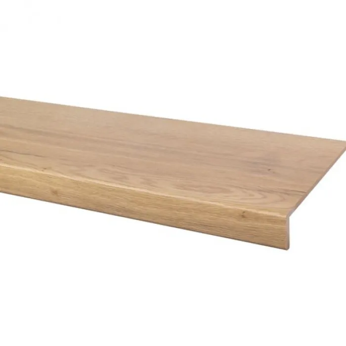 CanDo overzettrede met neus – Laminaat – Licht eiken. Voor de rechte treden van de trap zijn er overzettreden beschikbaar van 100 x 30 cm. Voor de grotere traptreden in huis waar een draai in zit, zijn er overzettreden van 130 x 38 cm beschikbaar.