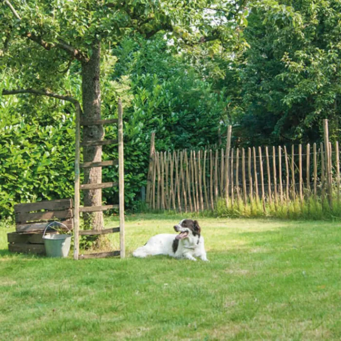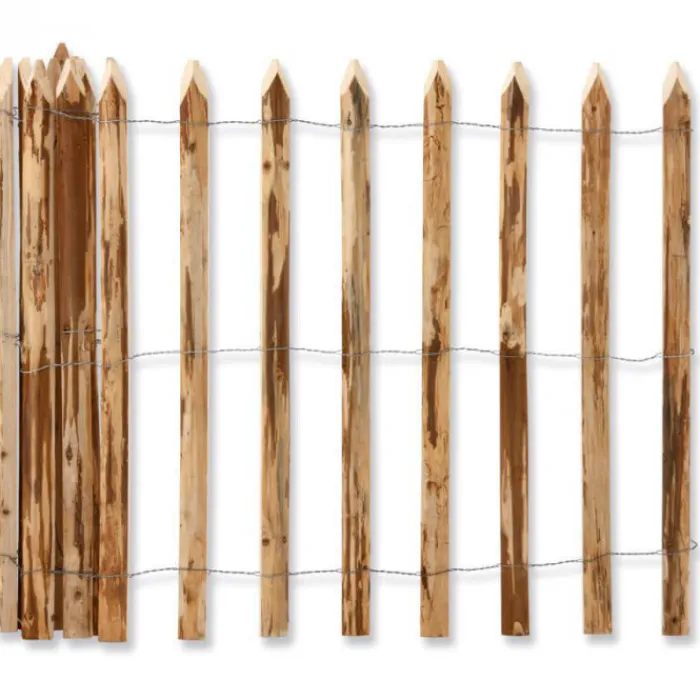 Kastanje schapenhek / stakettenhek van Elephant. Hoogte 75 cm, lengte 500 cm. De afstand tussen de houten palen is circa 8 cm.