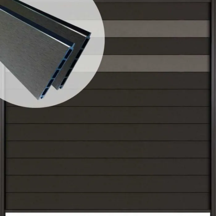 Deze set bestaat uit 10 lamellen composiet antraciet en 2 lamellen rock grey. Je begint onder en je eindigt bovenop altijd met een aluminium antraciete profielen. exclusief palen! Gebruik hiervoor altijd de Elephant Modular/Mix&Match sleufpalen.