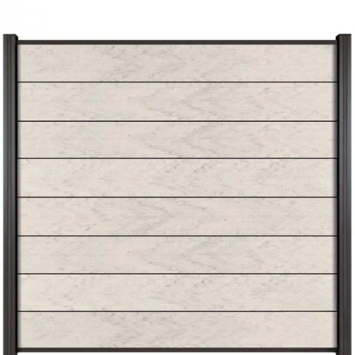 Deze Elephant Modular composiet tuinscherm set bestaat uit 2 afsluitlijsten boven en onder, 1 bevestigingset, 7 veren antraciet aluminium en 8 composiet lamellen. Bestel hierbij de bijbehorende Modular tuinpalen. Je stapelt eenvoudig de schutting tussen de palen in. De netto hoogte van het scherm is enkele centimeters lager dan de opgegeven 180 cm.