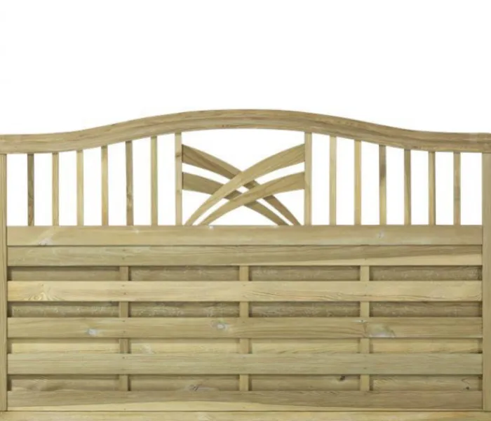 Plus tuinscherm toog vuren groen geïmpregneerd uit de serie Rondo. De afmetingen van dit scherm zijn 180 x 104/112 cm (b x h). Met doorkijkgedeelte. RVS geschroefd.