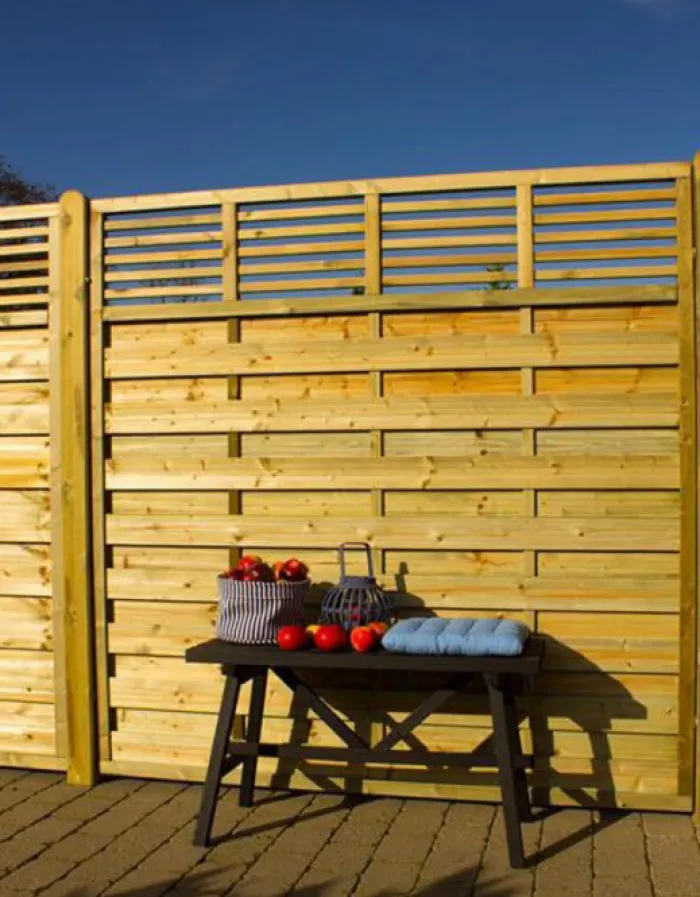 Plus Newline schuttingen en schermen zijn eenvoudig, elegant en tijdloos. De houten schuttingen zijn vol van karakter. Je hebt de keuze uit verschillende maten in deze serie. De schuttingen zijn verkrijgbaar in de landelijke kleur groen geïmpregneerd.