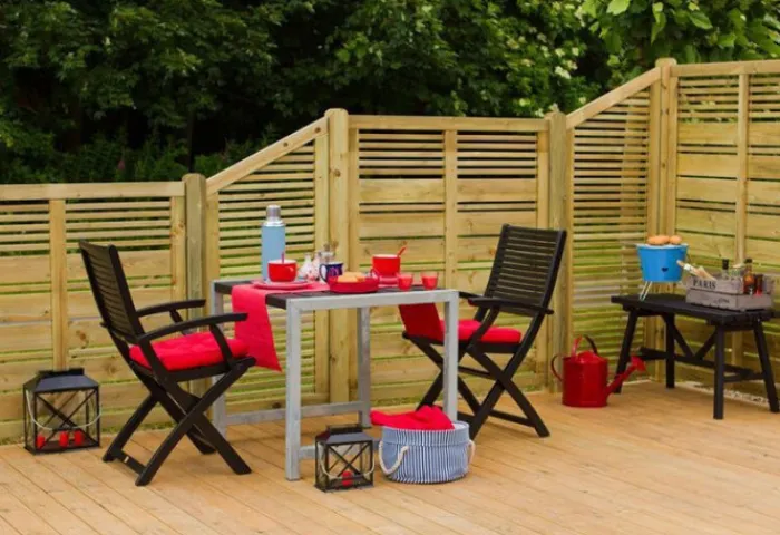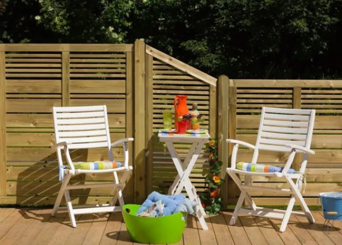 Alle producten uit de Silence serie zijn groen geïmpregneerd. Hierdoor wordt het hout langdurig beschermd tegen aantasting door weersomstandigheden, bacteriën, insecten en schimmels. Het oppervlak krijgt hierdoor ook een mooi uiterlijk. De kleuren wit, antraciet en zwart zijn dekkend gebeitst. De teak en grijsbruin varianten zijn halfdekkend afgelakt, hierdoor is de houtstructuur nog zichtbaar.