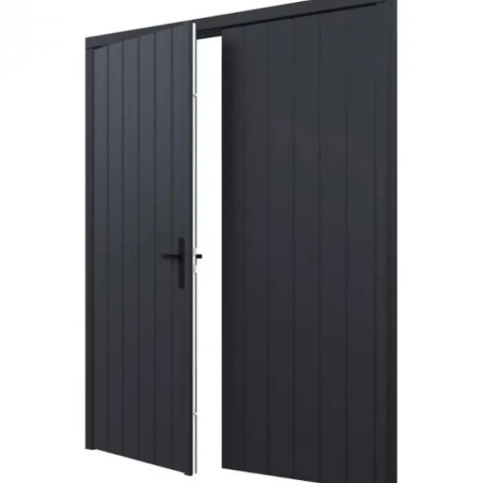 Trendhout dubbele plaatdeur inclusief kozijn. Afmeting per deur – 930 x 2115 mm. Afmeting kozijn – 2000 x 2189 mm. Door de aluminium inlage heeft deze plaatdeur een hoge stabiliteit en maatvastheid. De plaatdeur wordt geleverd exclusief dorpel. Deze is te vinden bij de bijbehorende producten.
