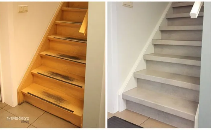 Voor de rechte treden van de trap zijn er overzettreden beschikbaar van 100 x 30 cm. Voor de grotere traptreden in huis waar een draai in zit, zijn er overzettreden van 130 x 38 cm beschikbaar. Het trede-over-trede systeem van Maestro Steps zorgt ervoor dat de bestaande trap niet uitgebroken hoeft te worden, en de traprenovatie gemakkelijk aan te brengen is. Geschikt voor gesloten, draaiende open trappen. En eenvoudige en budgetvriendelijke oplossing!