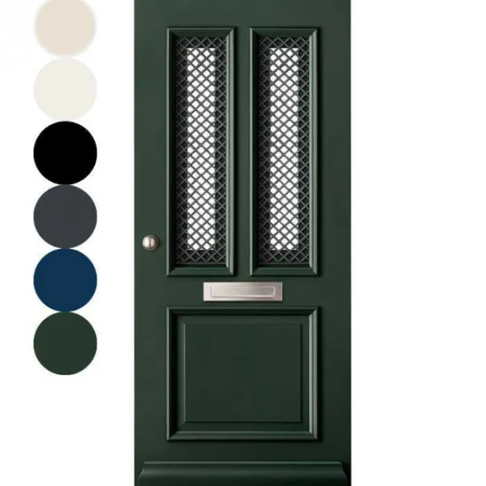 Deze klassieke voordeur uit de serie City Line is gemaakt van Merbau hardhout. Deze voordeur heeft typisch Nederlandse facetprofielen met glas en een rooster. Achter dit rooster zit een draairaam met mat chroom-kleurig draairaambeslag gemonteerd. De deur is voorbehandeld met een grijs kleurige Prime Quality verf. Deze is gemaakt op basis van alkydhars (120 mi Sigmalitch A22). Na de montage dient de deur nog afgelakt te worden in de gewenste kleur voor de garantie (zie ook de bijlage verwerkingsvoorschriften, garantie en voorwaarden). Het is ook mogelijk om de deur af te laten lakken tegen een meerprijs. Het is hierbij aan te raden om voor alle deelbewerkingen te kiezen. Ga je bijvoorbeeld zelf scharnieren infrezen, dan dien je deze nogmaals van de benodigde verlagen te voorzien. Bij de deur Roermond is een briefsleuf mogelijk.
