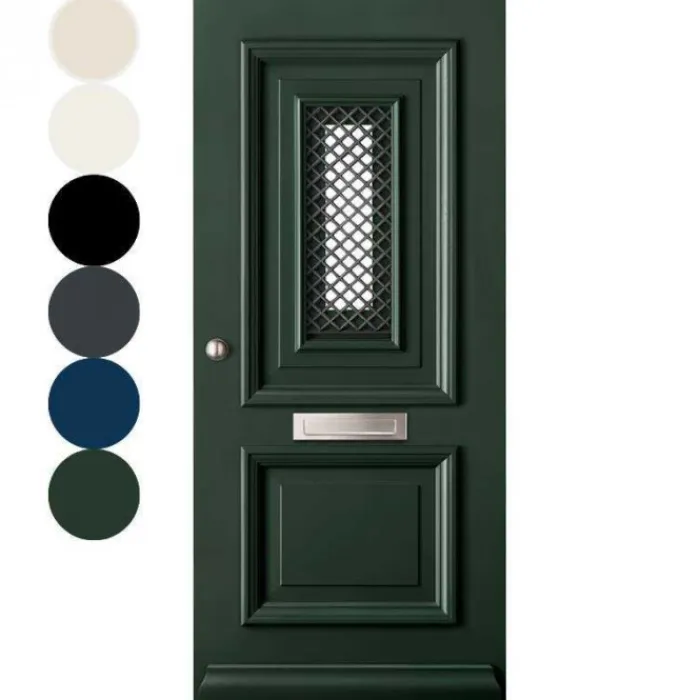 Deze klassieke voordeur uit de serie City Line is gemaakt van Merbau hardhout. Deze voordeur heeft typisch Nederlandse facetprofielen met glas en een rooster. Achter dit rooster zit een draairaam gemonteerd met mat chroom/kleurig draairaambeslag. De deur is voorbehandeld met een grijs kleurige Prime Quality verf. Deze is gemaakt op basis van alkydhars (120 mi Sigmalitch A22). Na de montage dient de deur nog afgelakt te worden in de gewenste kleur voor de garantie (zie ook de bijlage verwerkingsvoorschriften, garantie en voorwaarden). Het is ook mogelijk om de deur af te laten lakken tegen een meerprijs. Het is hierbij aan te raden om voor alle deelbewerkingen te kiezen. Ga je bijvoorbeeld zelf scharnieren infrezen, dan dien je deze nogmaals van de benodigde verlagen te voorzien. Bij de deur Wassenaar is een briefsleuf mogelijk.