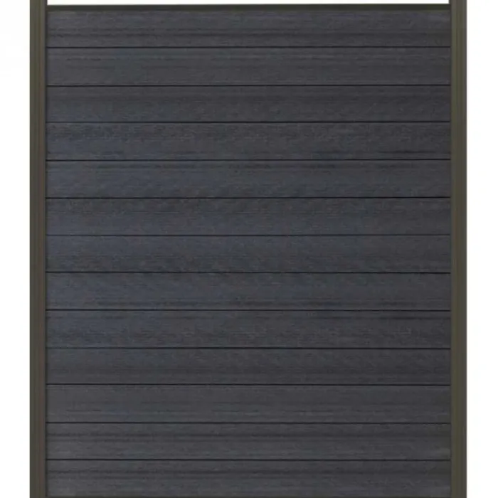 Schutting composiet co-extrusie Garda antraciet met antraciet aluminium kader (180 x 200 cm). Deze schutting wordt geleverd als een zelfbouw pakket waarmee je zelf een unieke schutting kunt maken.