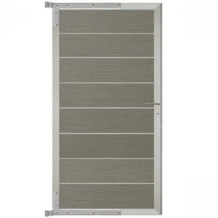 C-Wood zelfbouw tuindeur aluminium blank frame Modular – composiet co-ex grijs. Afmeting 90 x 180 cm. De hoogte van de tuindeur is enkele centimeters lager dan de opgegeven 180 cm. De tuindeur wordt geleverd inclusief deurbeslag.