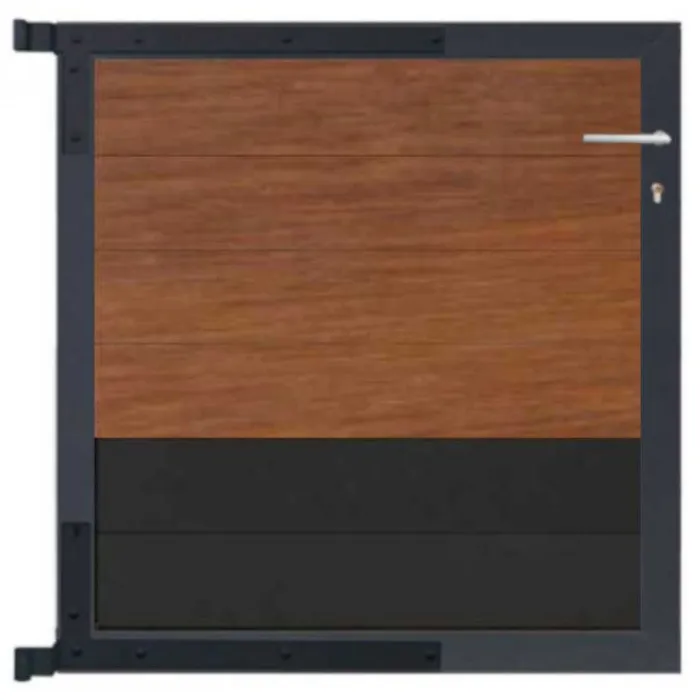 C-Wood zelfbouw Tuinpoort aluminium antraciet frame Mix & Match – hardhout Bamboe / alu antraciet (90 x 90 cm). De netto hoogte van deze tuinpoort is enkele centimeters lager dan de opgegeven 90 cm. De poort wordt geleverd inclusief deurbeslag. De schuttingdelen schuif je van bovenaf in het frame. De schuttingdelen dienen gehalveerd te worden tot een lengte van 81,5 cm. Voor het opvullen van één frame zijn in totaal 6 delen (van 81,5 cm) benodigd.