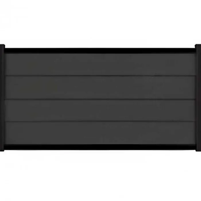 C-Wood zelfbouw schutting composiet Modular antraciet met zwart aluminium accessoires. Geschikt om een scherm te maken van 97 cm hoog en maximaal 180 cm breed. De breedte is eenvoudig in te korten.