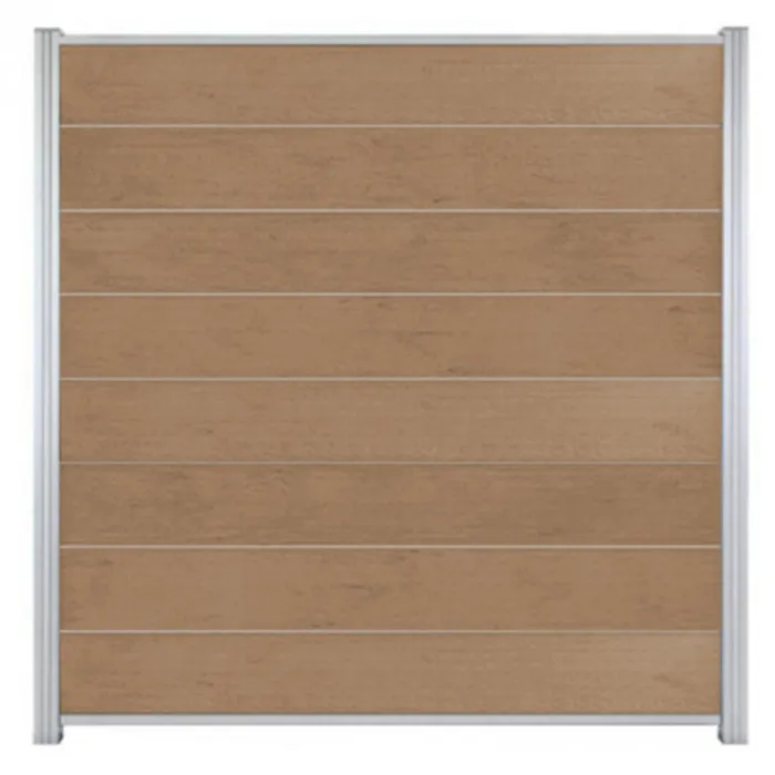 C-Wood zelfbouw schutting composiet Modular teak met blank aluminium accessoires. Geschikt om een scherm te maken van 180 cm hoog en maximaal 180 cm breed. De breedte is eenvoudig in te korten. De netto hoogte van het scherm is enkele centimeters lager dan de opgegeven 180 cm.