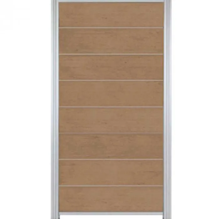 C-Wood zelfbouw schutting composiet Modular teak met blank aluminium accessoires. Geschikt om een scherm te maken van 180 cm hoog en maximaal 90 cm breed. De breedte is eenvoudig in te korten.