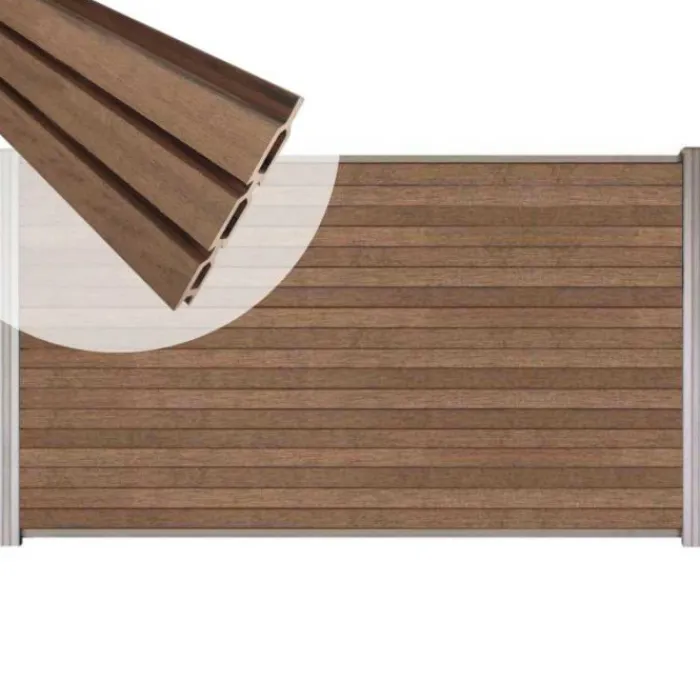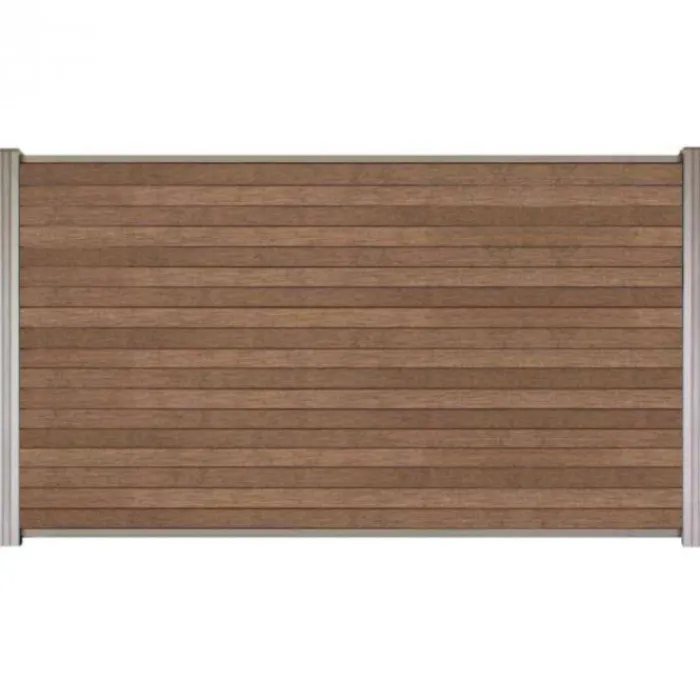 C-Wood zelfbouw schutting composiet Rhombus Triple bruin gevlamd met blank aluminium accessoires. Geschikt om een scherm te maken van 90 cm hoog en maximaal 180 cm breed. De breedte is eenvoudig in te korten.