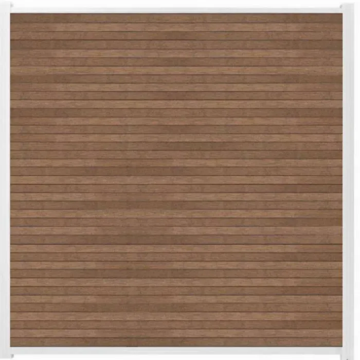 C-Wood zelfbouw schutting composiet Rhombus Triple bruin gevlamd met wit aluminium accessoires. Geschikt om een scherm te maken van 200 cm hoog en maximaal 180 cm breed. De breedte is eenvoudig in te korten.