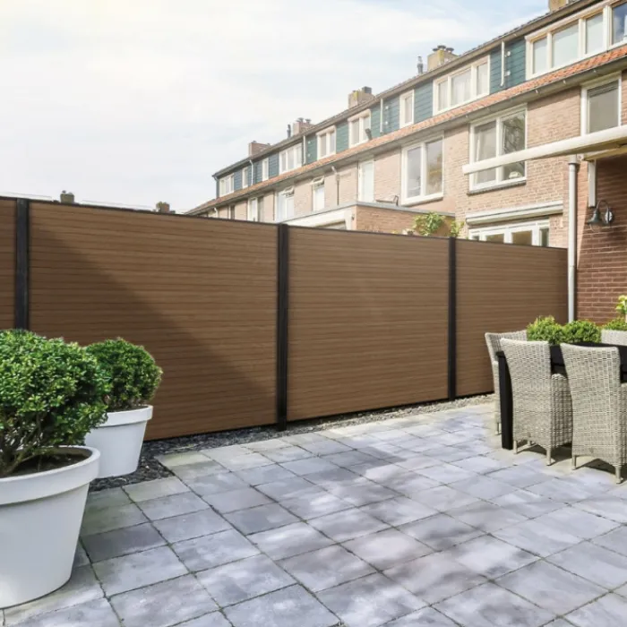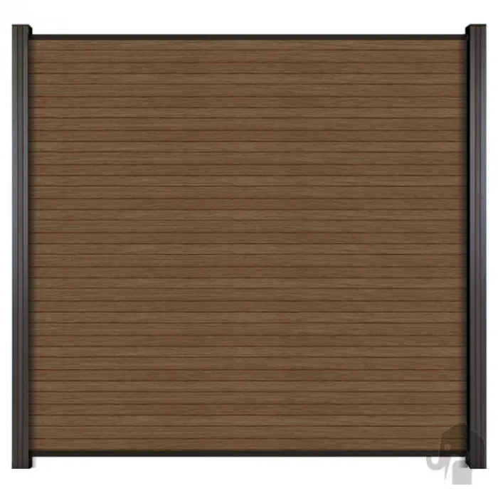 Hot Elephant Schutting composiet Design donkerbruin met blank aluminium frame (180 x 180 cm)