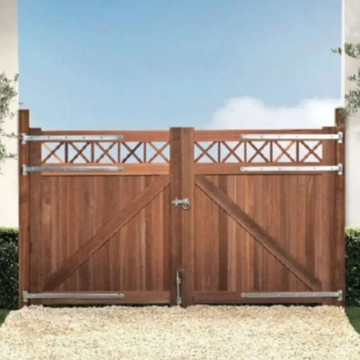 Zware kwaliteit bankirai tuinpalen met een diamantkop. Past heel mooi bij de Belmonte poorten van Elephant.