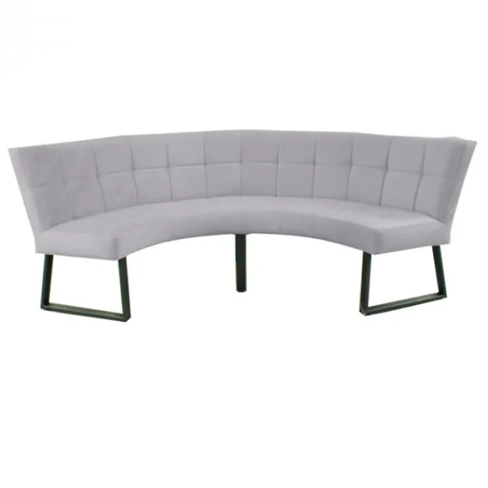 HomingXL ronde eetkamerbank geschikt voor een ronde tafel met een diameter van 150 cm. Deze stoere halfronde eetkamerbank Amsterdam is gestoffeerd met de prachtige Element velours stof in de kleur antraciet. De bank is uitgevoerd met zwarte metalen poten. Deze eetkamerbank heeft een stoere uitstraling en is zowel geschikt voor een industrieel als een modern interieur.