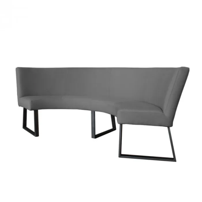 HomingXL ronde eetkamerbank geschikt voor een ronde tafel met een diameter van 150 cm. Deze stoere halfronde eetkamerbank Rotterdam is gestoffeerd met de prachtige Element velours stof in de kleur steengrijs. De bank is uitgevoerd met zwarte metalen poten. Deze eetkamerbank heeft een stoere uitstraling en is zowel geschikt voor een industrieel als een modern interieur.