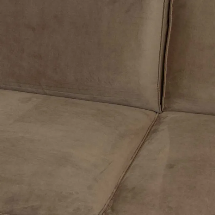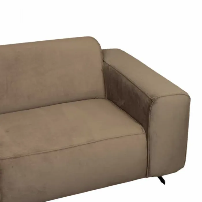Deze stoere loungebank heeft met zijn diepe zit met bonellvering en lage rugleuning een moderne uitstraling. De Lambada heeft vaste kussens met opstaande naden en is uitgevoerd in velours Juke taupe 12. De unieke brede poten zijn van zwart metaal. Houd je van een stevige zitting en een stoere industriële uitstraling, dan is dit jouw bank!