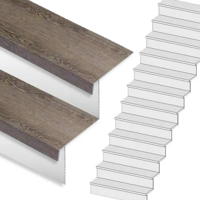 Dit is een complete Stepwoord traprenovatieset met SPC toplaag traptreden in de kleur verweerd eiken met witte stootborden, inclusief montagekit en afwerkingskit. Deze complete set is geschikt voor een rechte trap met 12 treden. De set wordt geleverd inclusief witte stootborden, omdat het een set voor een dichte trap betreft.
