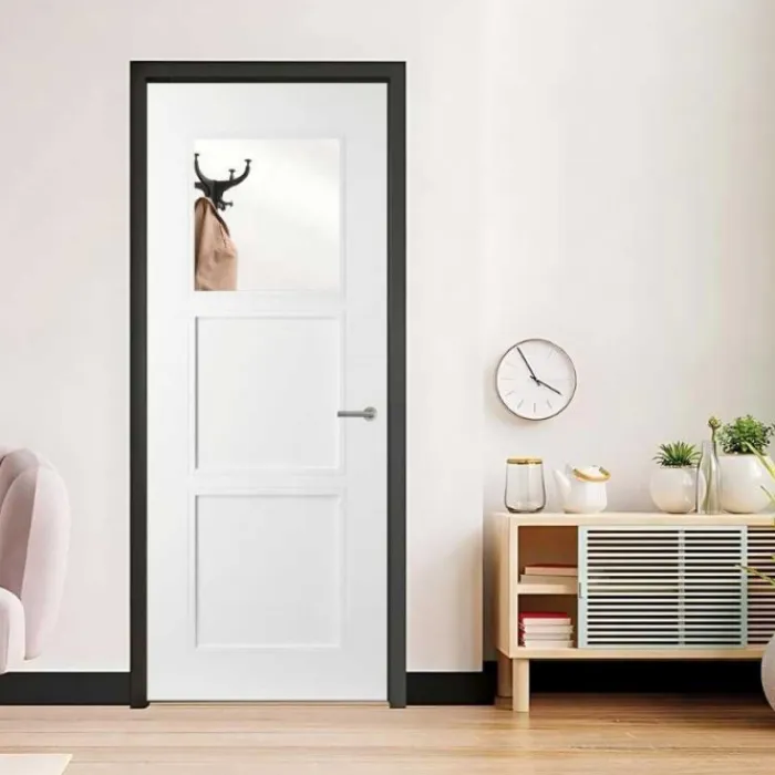 De Svedex AE47 is een moderne binnendeur met een design van pure eenvoud. De binnendeur beschikt over 1 grote ruit en 2 panelen onder elkaar met een brede omlijsting. Dit geeft een stijlvol karakter.