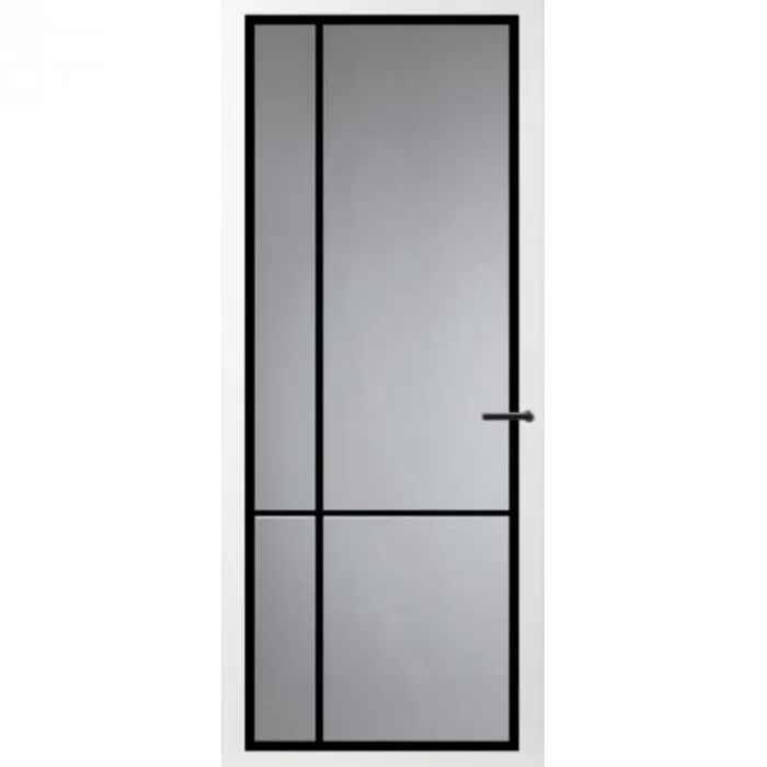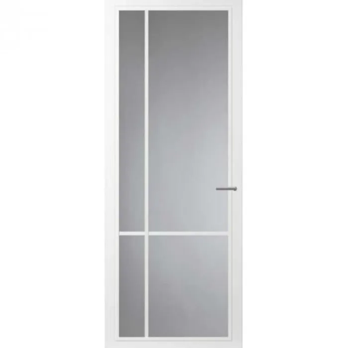 De Svedex binnendeur Form FM05 is kant-en-klaar wit afgelakt en voorzien van gehard veiligheidsglas. Kenmerkend zijn de smalle stijlen en dorpels van 90 mm breed en minimalistische glaslatten. De verzonken glaslatten zijn standaard wit en zijn tegen een meerprijs leverbaar in zwart