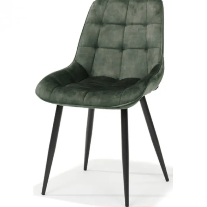 Deze stoel is verkrijgbaar in de kleuren Adore antraciet, groen en goud en wordt geleverd met zwart gepoedercoat metalen poten. De verschillende kleuren zijn ook uitstekend met elkaar te combineren. De stoelen beschikken over een hoogwaardige afwerking met decoratieve stiksels.