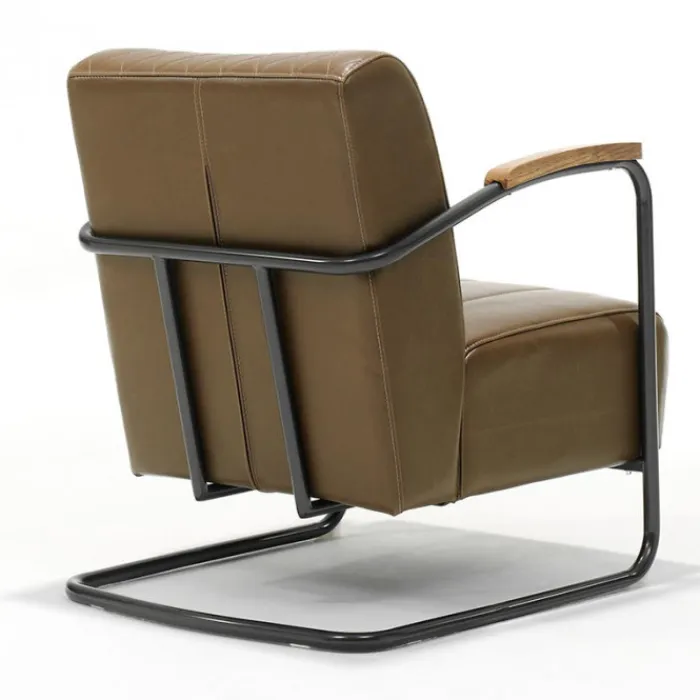 De industriële fauteuil Wilson II is gestoffeerd met de PU kunstleder Jaguar in de kleur camel, en is uitgevoerd met zwarte metalen poten en een houten armsteun. Deze fauteuil heeft een stoere uitstraling en is zowel geschikt voor een industrieel als een moderner interieur!