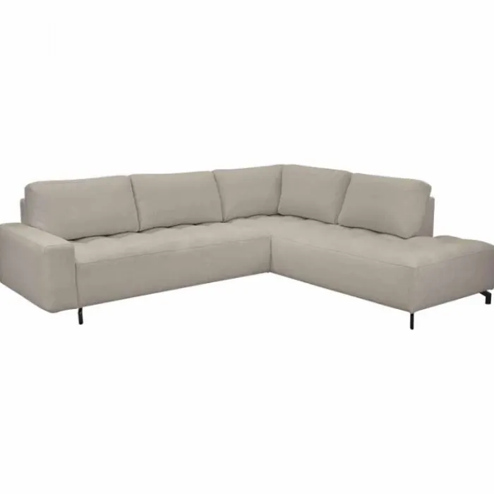 Deze moderne loungebank (237 x 278 cm) is uitgevoerd in de stof Positano beige. De stof is grof geweven. De Lagom heeft een zacht, maar stevig zitkussen en heeft lekkere zachte rugkusssen. Hierdoor biedt deze bank optimaal zitcomfort. Hoewel deze bank lekker groot is, staat deze bank toch ruimtelijk in je woonkamer door de dunne pootjes.