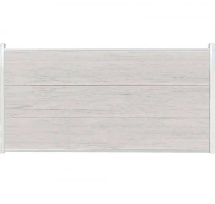 Schutting composiet co-extrusie Como bi-color beige met blank aluminium kader (180 x 90 cm). Deze schutting wordt geleverd als een zelfbouw pakket waarmee je zelf een unieke schutting kunt maken.