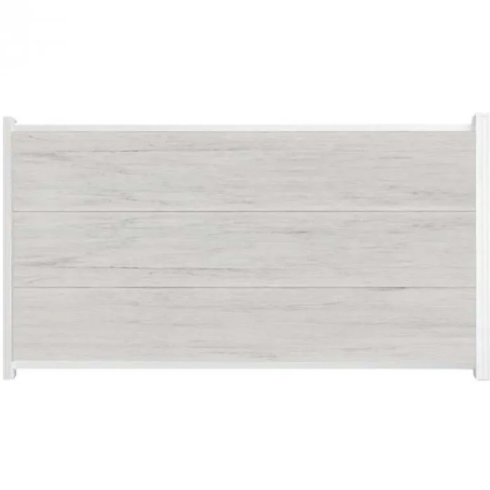 Schutting composiet co-extrusie Como beige met wit aluminium kader (180 x 90 cm). Deze schutting wordt geleverd als een zelfbouw pakket waarmee je zelf een unieke schutting kunt maken.