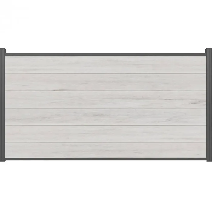 Schutting composiet co-extrusie Garda bi-color beige met antraciet aluminium kader (180 x 90 cm). Deze schutting wordt geleverd als een zelfbouw pakket waarmee je zelf een unieke schutting kunt maken.