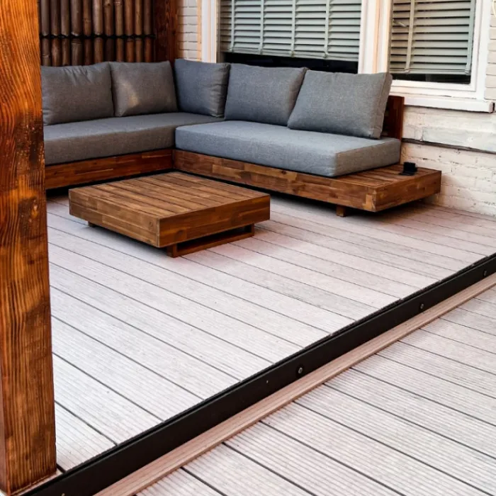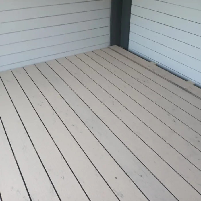 Vlonder totaalpakket voor 1,00 m2, gelegd met steengrijs composiet vlonderplanken van 400 cm lang, 2,1 cm hoog en 14,0 cm breed. Pakket bestaat uit vlonderplanken, onderbalken, clips en schroeven om een vlonderterras van te maken. De bijbehorende clips en de kop van de schroef zijn in dezelfde kleur. Vul het benodigd aantal vierkante meter terras in en de website rekent automatisch uit hoeveel planken je ontvangt.