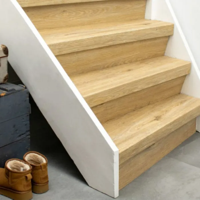 Stepwood PVC stootbord voor de verticale delen van de trap. Eenvoudig de trap bekleden met Stepwood traprenovatie. PVC toplaag stootbord, dus ook dezelfde afwerking als de treden. Het stootbord is 150 cm breed, hiermee kun je zelf de trap renoveren.